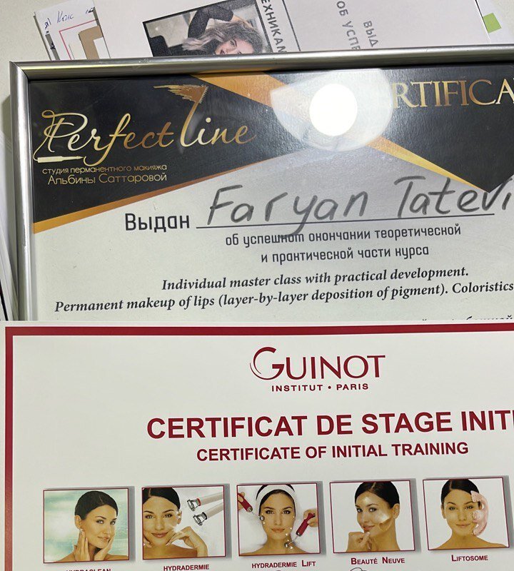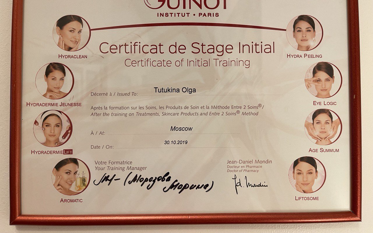 Сертификаты по обучению на косметике La Biosthetigue, Guinot