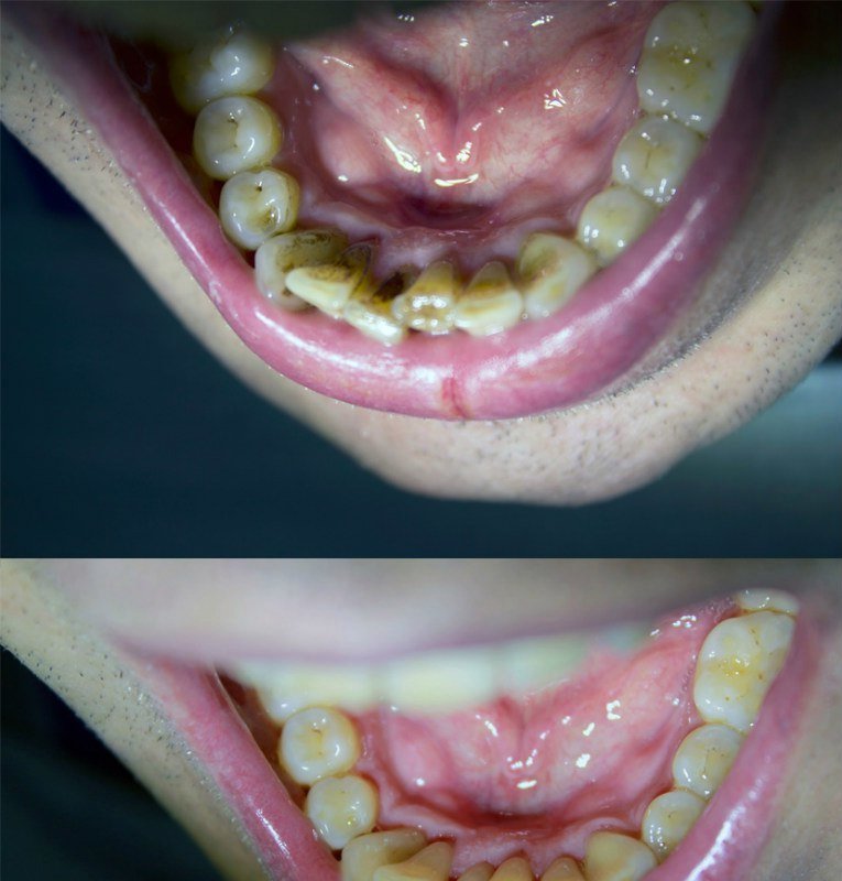 К сентябрю 2023 года зуб начал беспокоить: странный привкус после твердой пищи, боли, опухоль и кровотечение десны. Я думала, это от ирригатора или чувствительных десен — купила ополаскиватели, гели, старалась поддерживать гигиену ещё лучше. Улучшения были минимальными, но я терпела, веря в лечение.