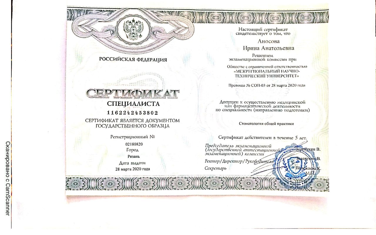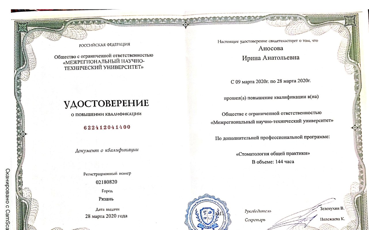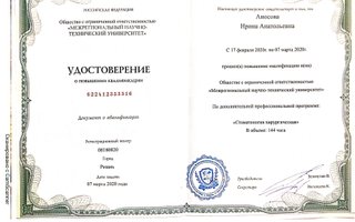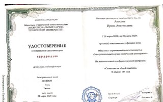 2020 — Стоматология общей практики. Сертификат специалиста. Общество с ограниченной ответственностью «Межрегиональный научно-технический университет»