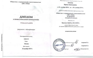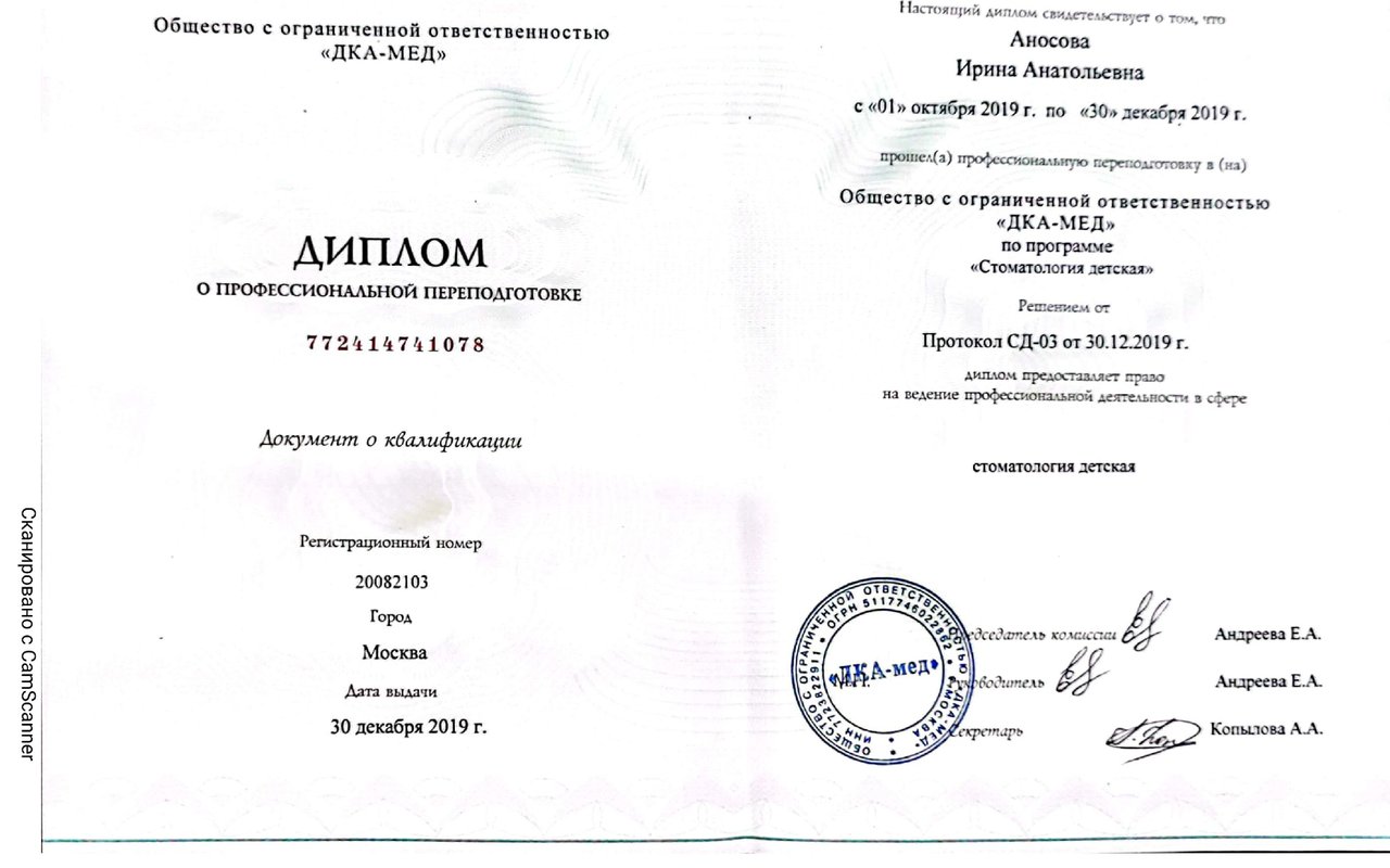 2019 — Стоматология детская. Профессиональная переподготовка. Общество с ограниченной ответственностью «ДКА-МЕД»