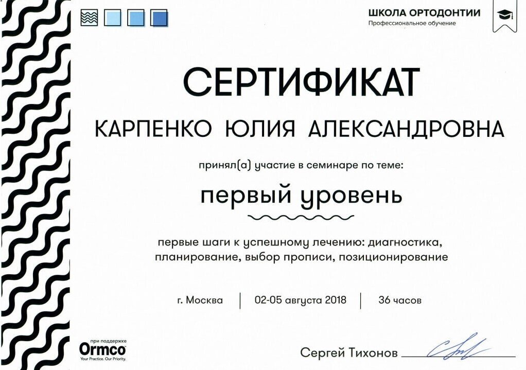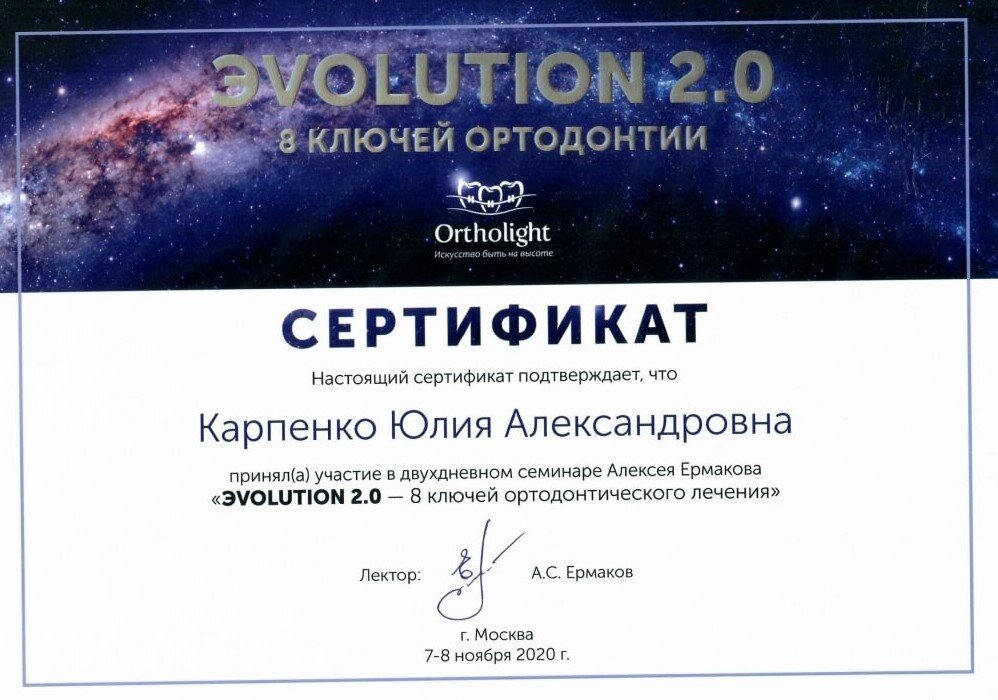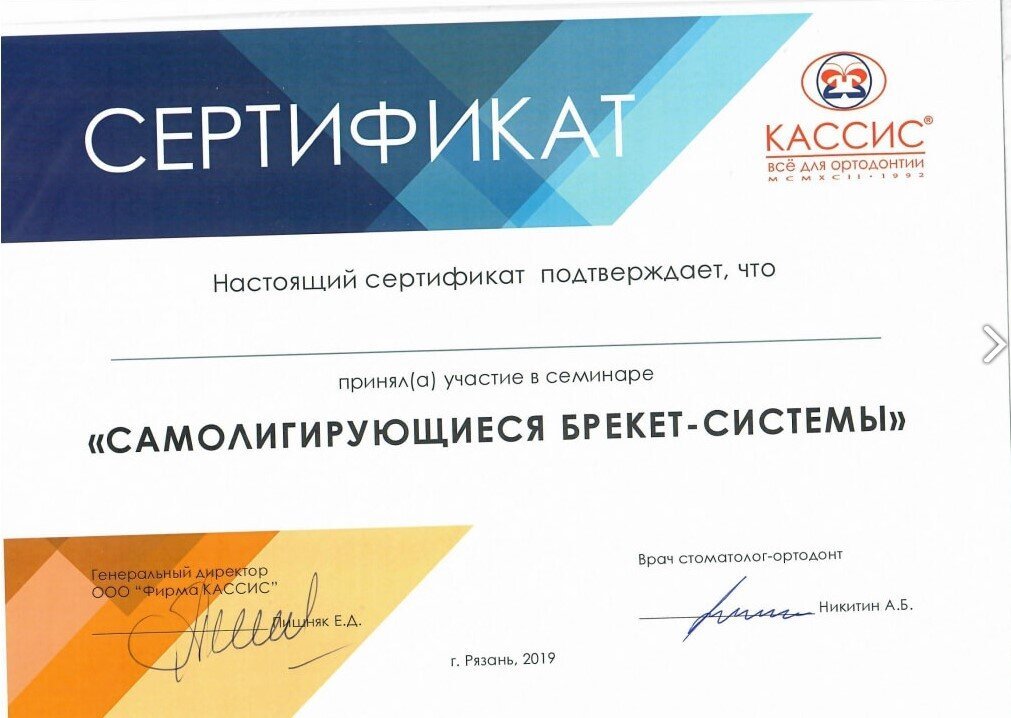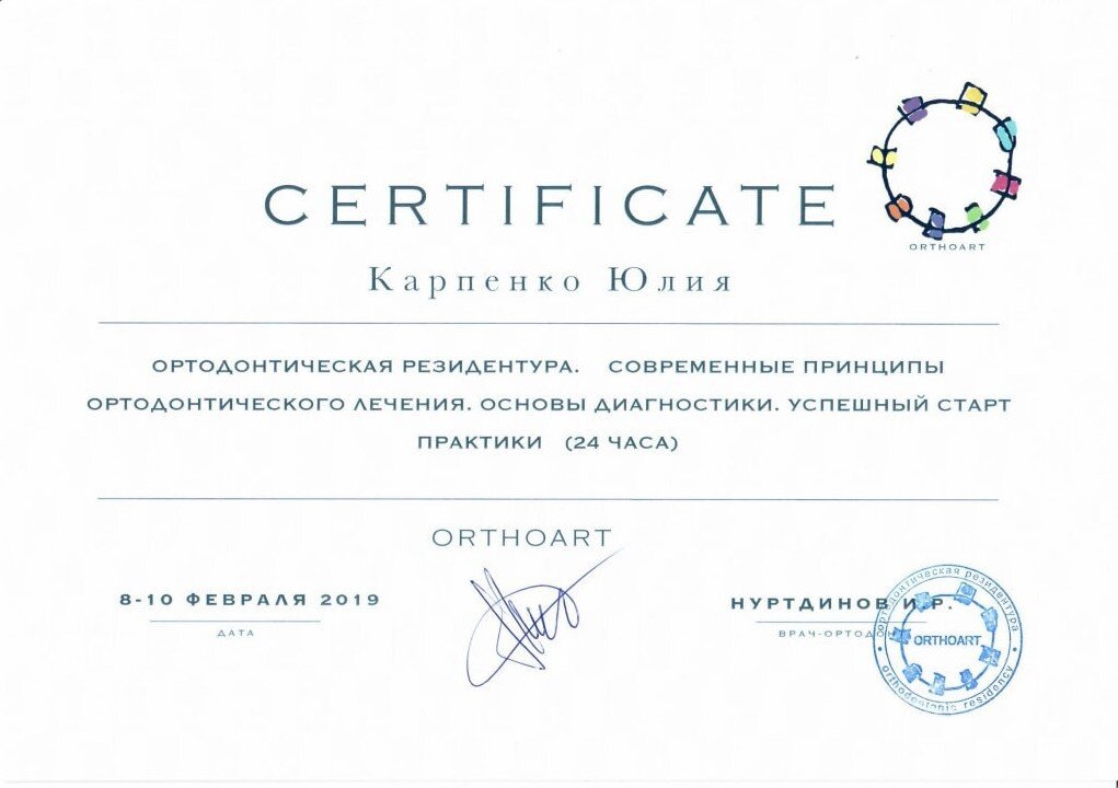 2019–2019 — Первичная специализированная аккредитация по специальности «Ортодонтия»