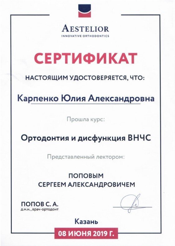 2017–2019 — Окончила ординатуру по специальности “Ортодонтия”.