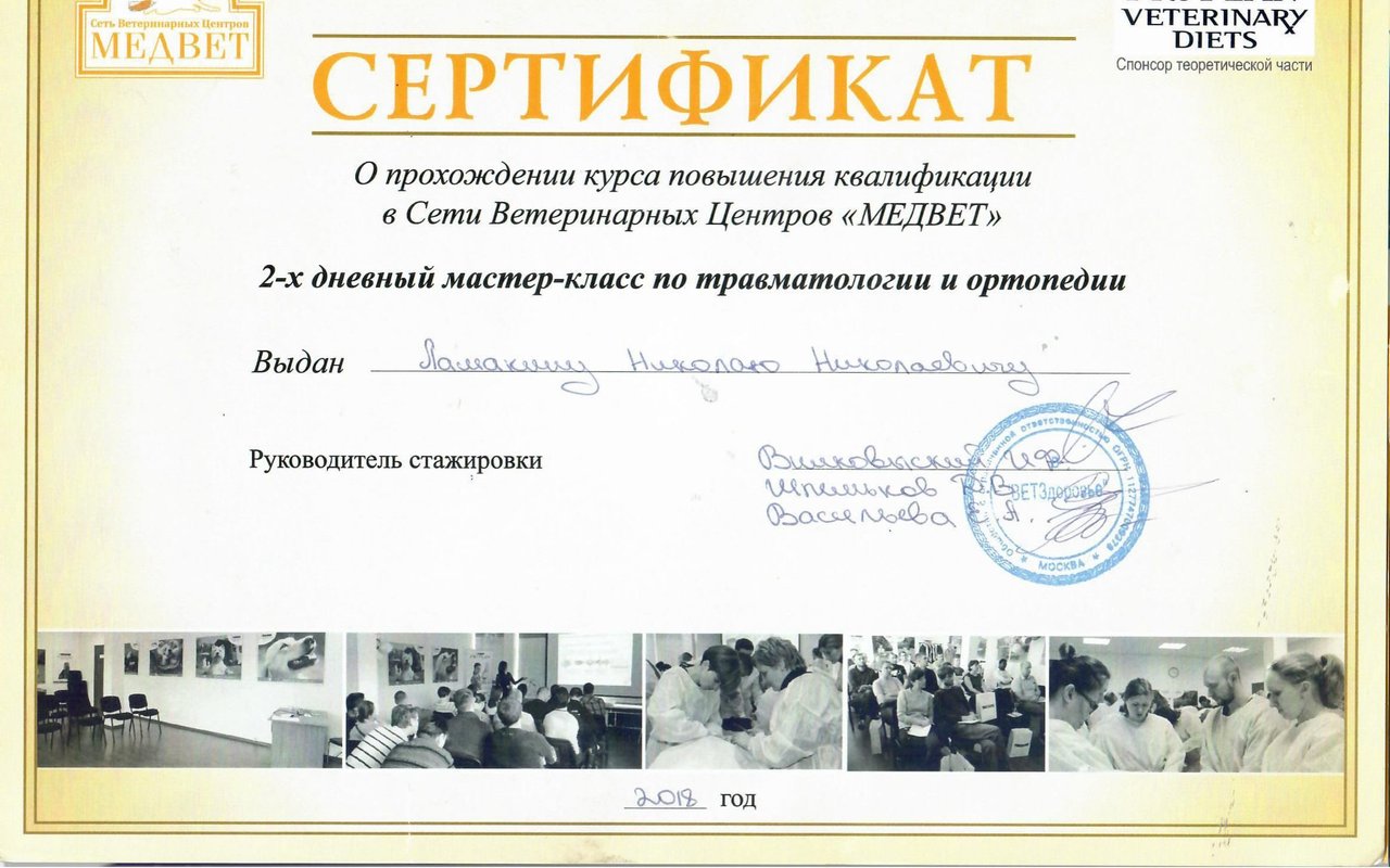 2018 — В 2018 году прошел курс повышения квалификации по травматологии и ортопедии в клинике «МЕДВЕТ» (Вилковыский И.Ф., Шпиньков Д.В., Васильева Е.А.)