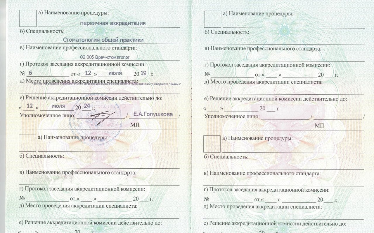 2019 — Медицинский университет «Реавиз» (стоматология)