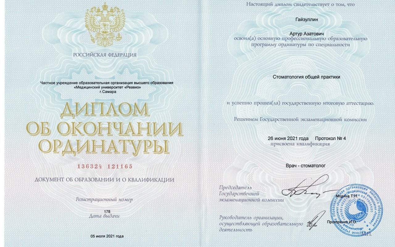 2021 — Медицинский университет «Реавиз» (стоматология общей практики). Ординатура.