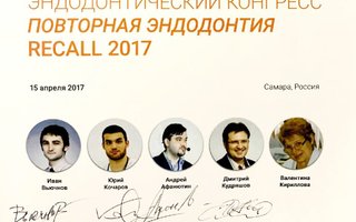 2017г. • "Лечение пульпитов и периодонтитов в детской стоматологии" • Первый Поволжский эндодонтический конгресс. Повторная эндодонтия. • "Дезинфекция корневых каналов. Эффективные методики обработки, обтурации. Теоретическая лекций и демонстрация"