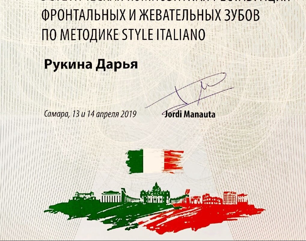 2019г. • "Восстановление зубов коронками в детской стоматологии" • "Эстетическая композитная реставрация фронтальных и жевательных зубов по методике STYLE ITALIANO"