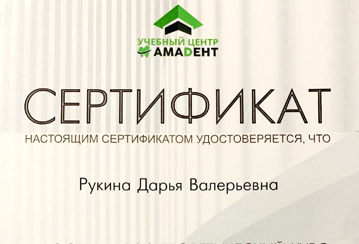 - Есть ли у Рукиной Дарьи Валерьевны необходимые сертификаты?