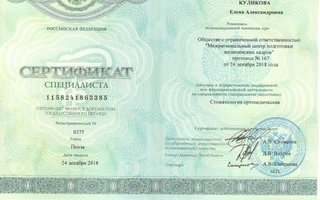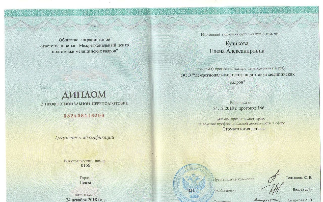 Врач стоматолог2005г. Окончила Самарский Государственный Медицинский Университет по специальности "Стоматология"