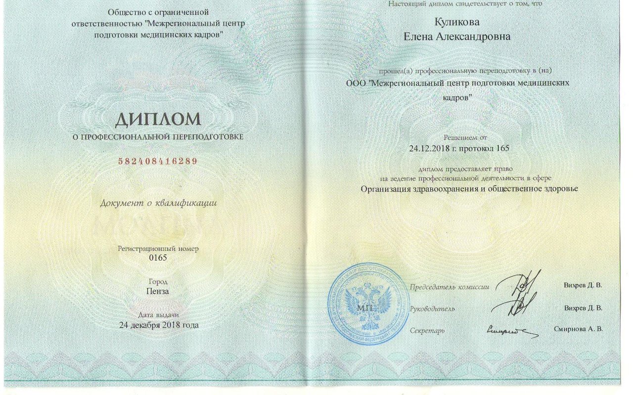 Места работы врача Елены Александровны Куликовой