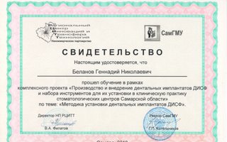 главный врачБеланов Геннадий Николаевич является стоматологом-ортопедом. Вы можете записаться к Геннадию Беланову, если вам требуется восстановить утраченный зуб или если один из зубов разрушен до такой степени, что простая пломба ему не поможет. Зубы перед протезированием обязательно должны быть санированы, так что перед визитом к ортопеду лучше посетить стоматолога-терапевта.... Показать еще