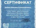 2015 — Cертификат PEEK-PERSO - Имплантология. Без костной пластики и без металла.