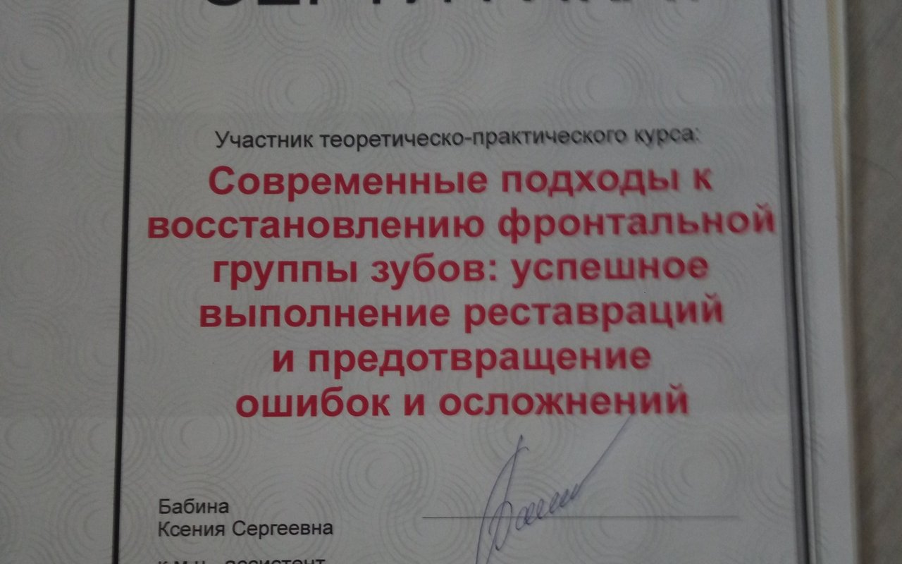 2015 — «Современные подходы к восстановлению фронтальной группы зубов: успешное выполнение реставраций и предотвращение ошибок и осложнений» Rocado Med