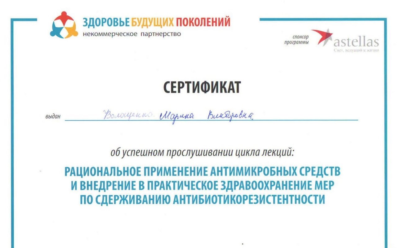 2015 — "Рациональное приминение антимикробных средств и внедрение в практическое здравоохранение мер по сдерживанию антибиотикорезидентности"