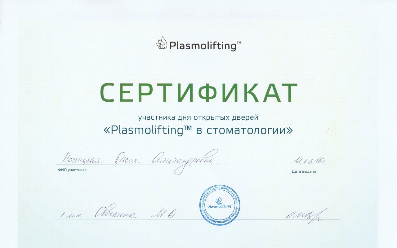 2016–2016 — Плазмолифтинг в стоматологии