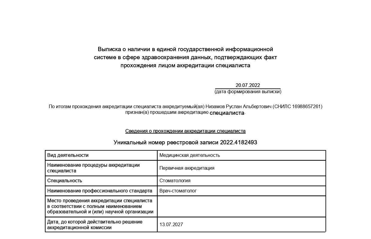 Места работы врача Руслана Альбертовича Низамова