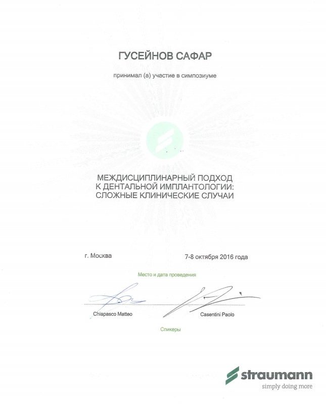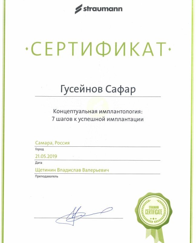 Сафар Гусейнов — опытный стоматолог и имплантолог с 9-летним стажем. Пациенты ценят его профессионализм, индивидуальный подход и внимательное отношение. Он помогает вернуть здоровье и красивую улыбку, делая процедуры максимально комфортными и результативными. Сафар Рашадович заслуженно вызывает доверие и положительные отзывы.