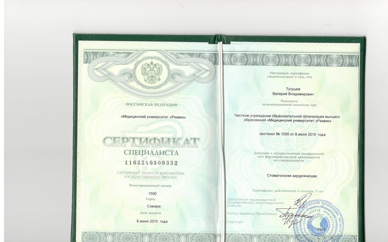 - Есть ли у Тугушева Валерия Владимировича требуемые сертификаты?