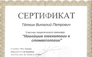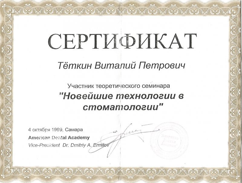 1999 — Участник теоретического семинара «Новейшие технологии в стоматологии»