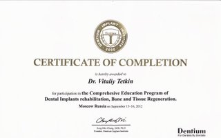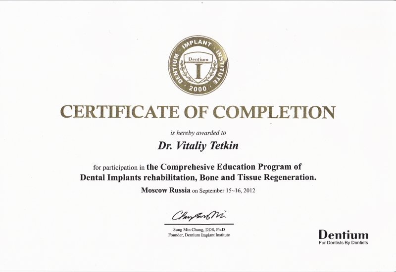 2012 — Dentium “Реабилитация дентальными имплантатами, методы регенерации костной ткани»