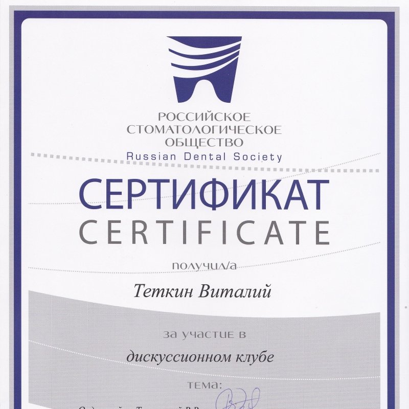 2013 — Российское стоматологическое общество. Russiаn Dental Society. Участие в дискуссионном клубе.