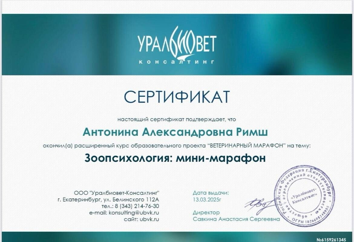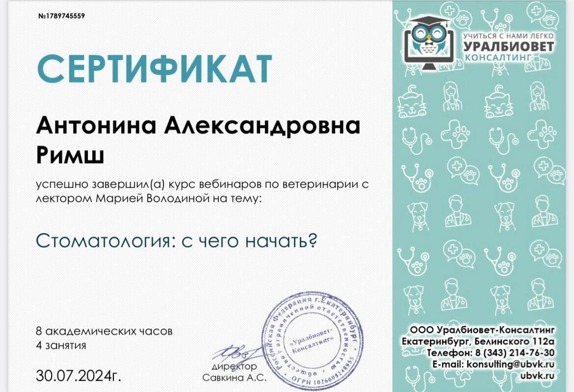 Отзывы о ветеринаре Антонине Александровне Римш