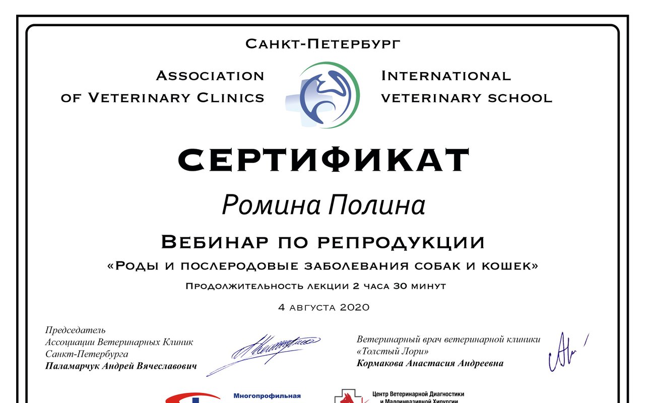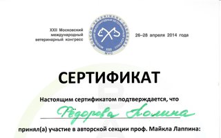• Регулярно посещает ветеринарные конференции, мастер-классы,