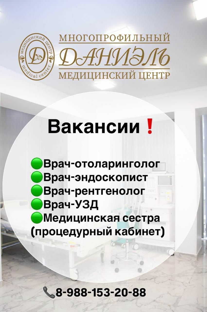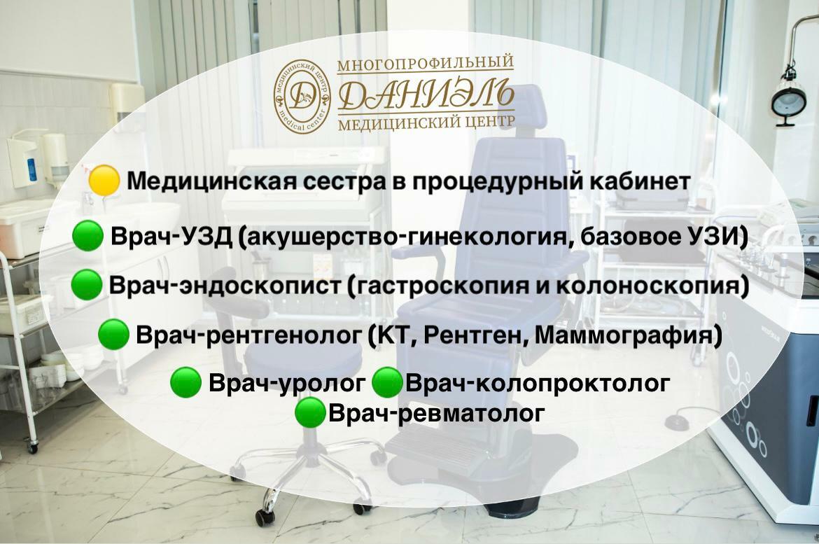 В наш многопрофильный медицинский центр «Даниэль» требуются следующие специалисты: