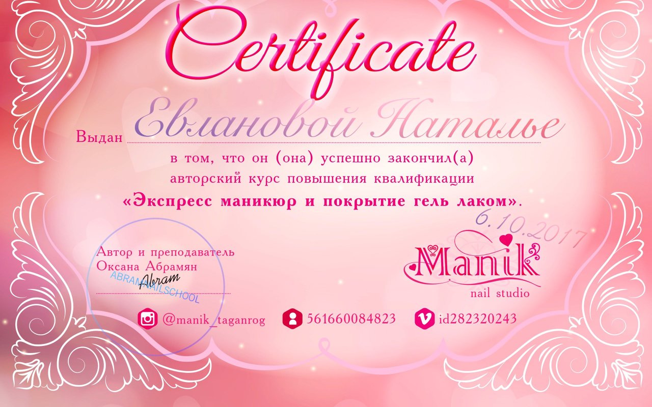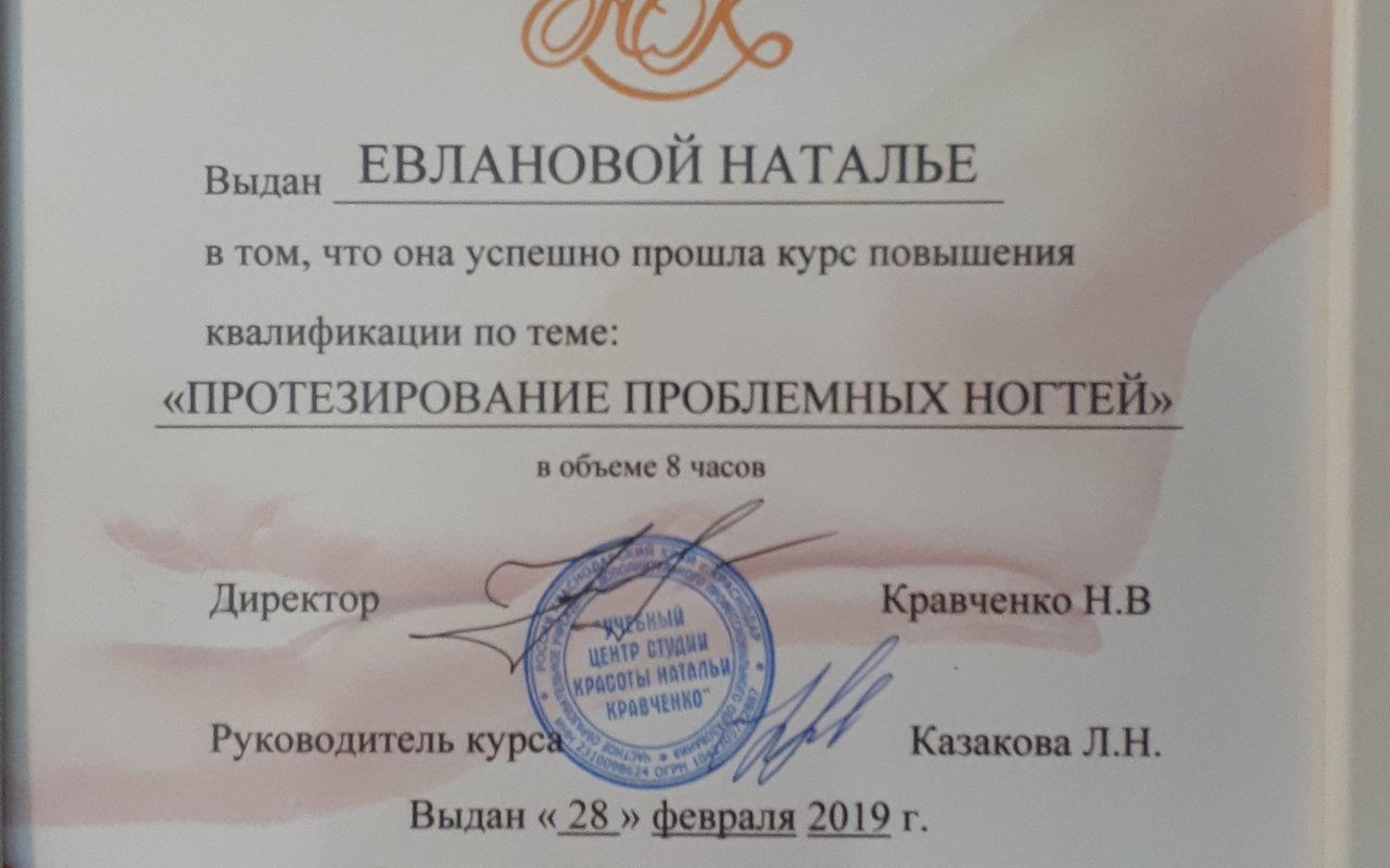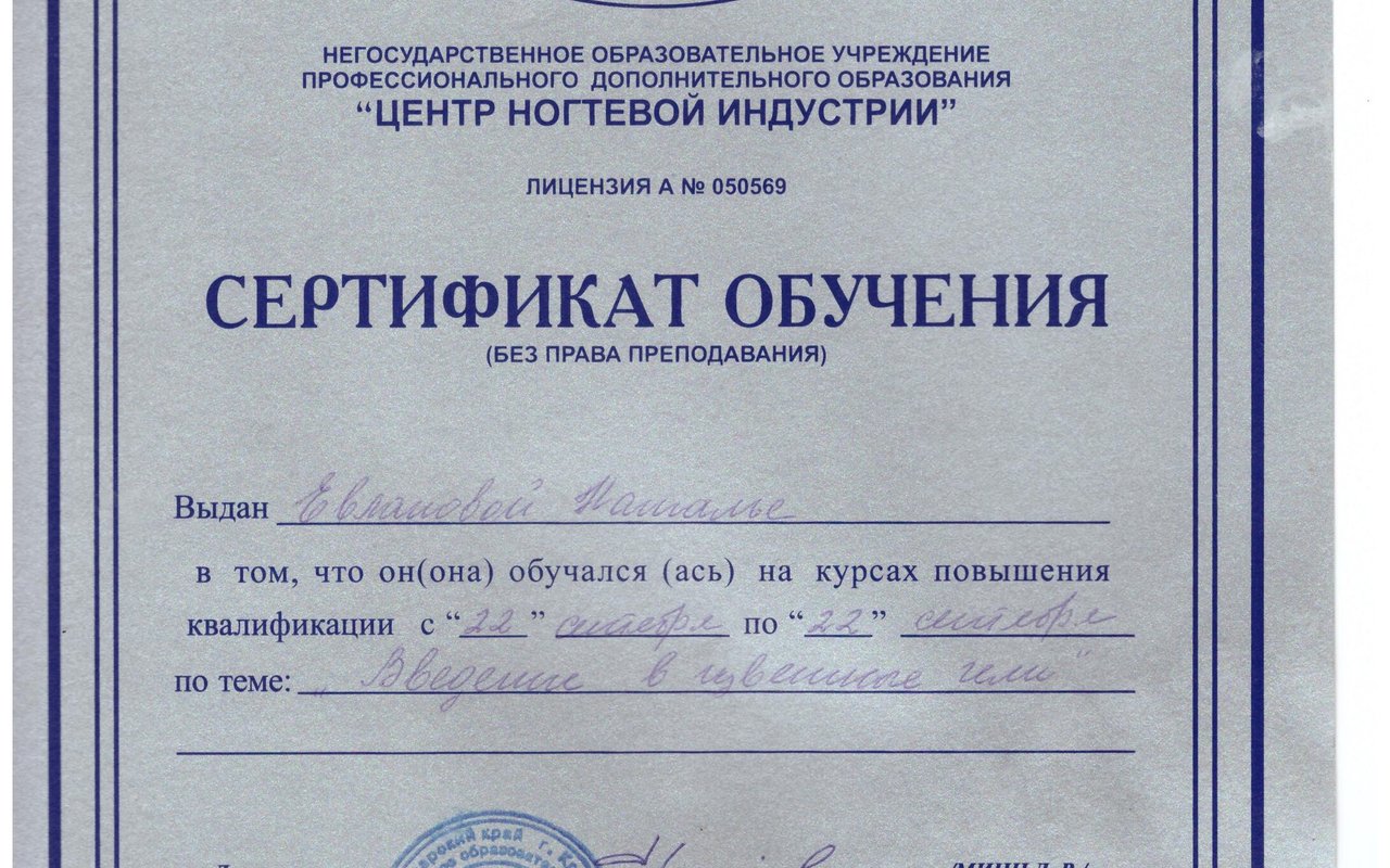 2003 — Закончила факультет по средне-специальному образованию по профессии мастер маникюра и педикюра