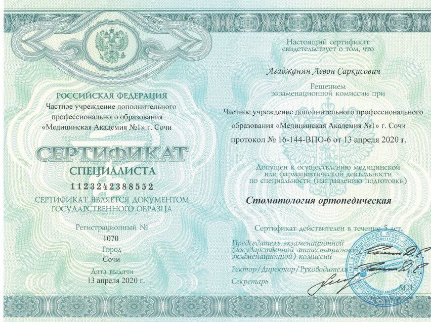 2020 — Медицинская Академия №1 г. Сочи Стоматология ортопедическая