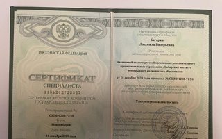 2020 — Программа "Ультразвуковая диагностика", Сибирский институт непрерывного медицинского образования (г.Новосибирск)