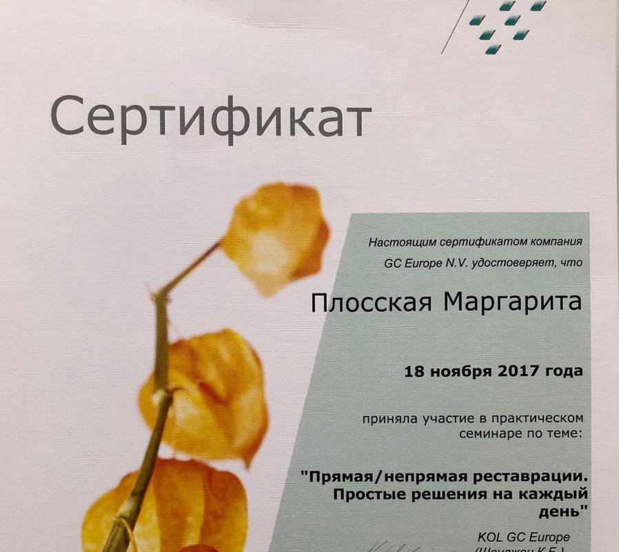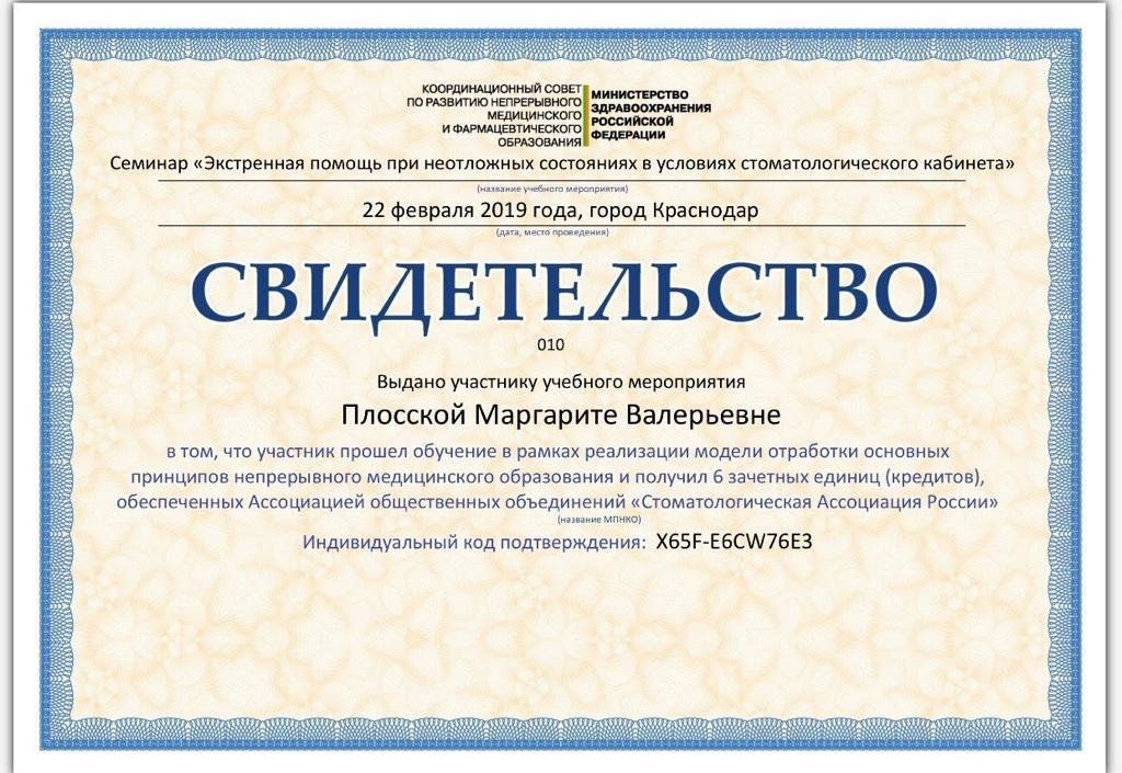 - Есть ли у Плосская (Довженко) Маргариты Валерьевны требуемые сертификаты?