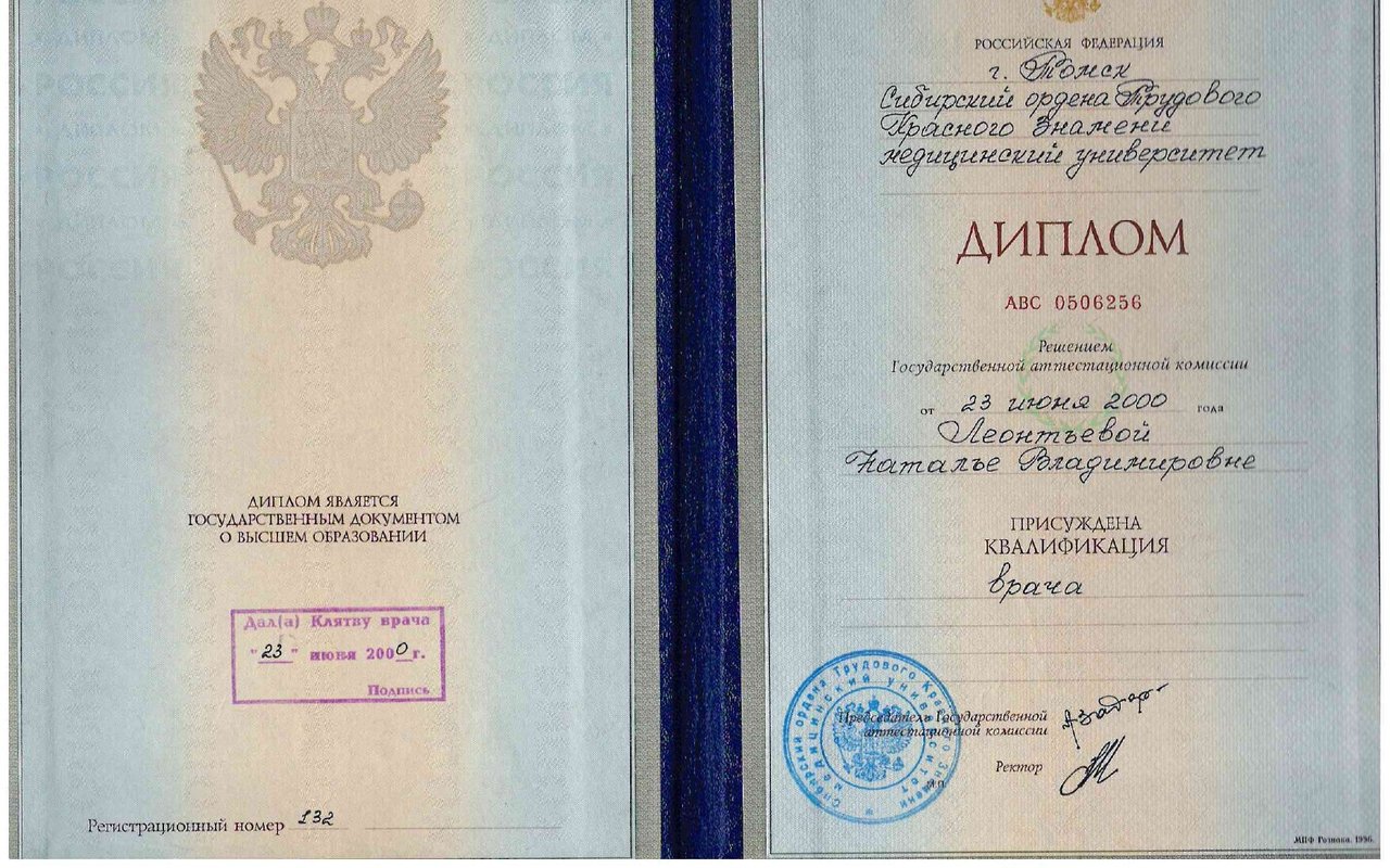 2000 — Окончила Сибирский государственный медицинский университет, г Томск, лечебное дело (врач)