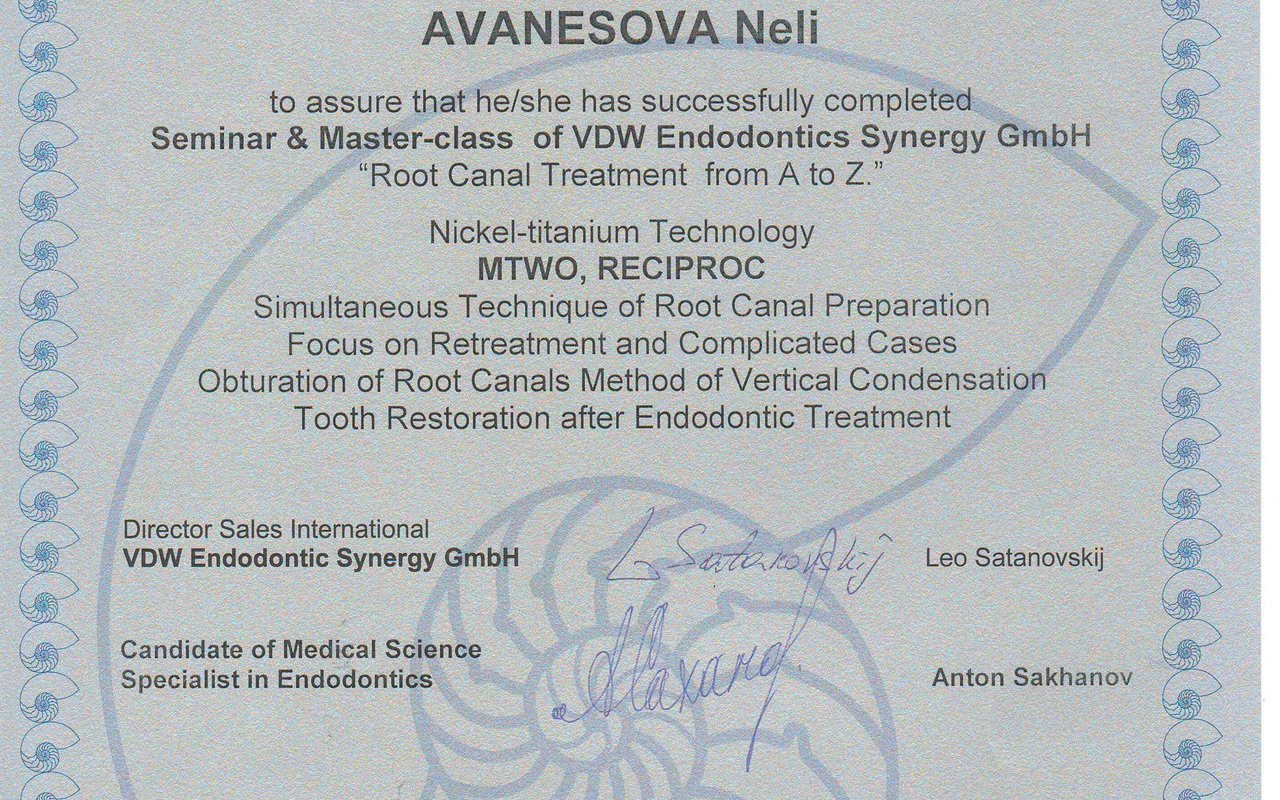 Большое внимание уделяет профилактике стоматологических заболеваний. Всегда дает рекомендации по уходу зубов в домашних условиях. Проводит все виды отбеливания , включая внутриканальное. Также Нели Леонидовна является специалистом в области эстетической реставрации всех групп зубов.