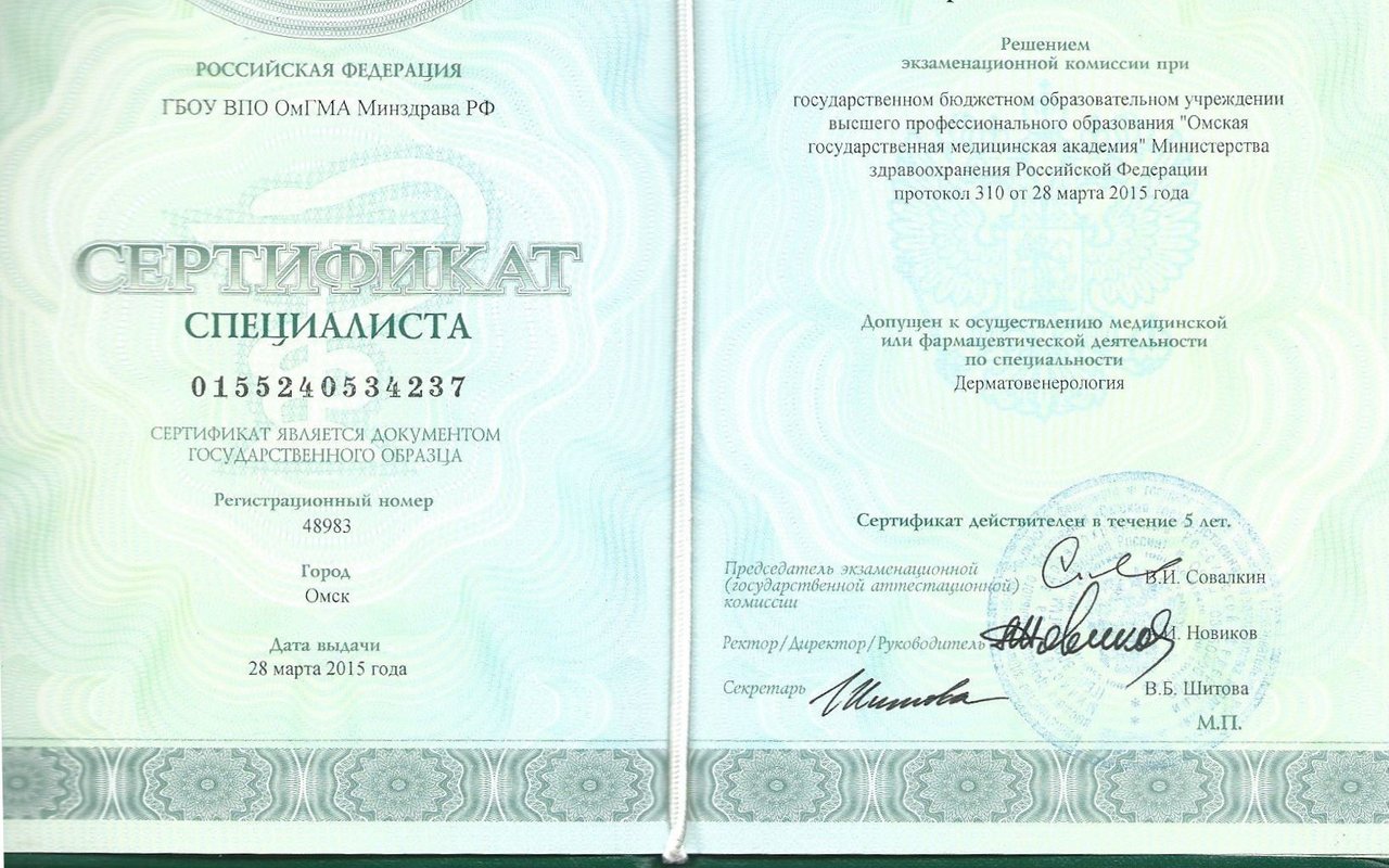 1967 — Омская государственная медицинская академия (дерматовенерология)