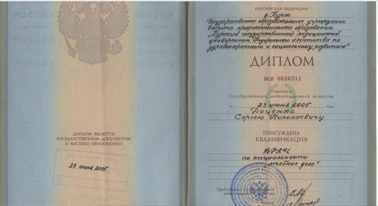 Места работы врача Сергея Николаевича Доценко