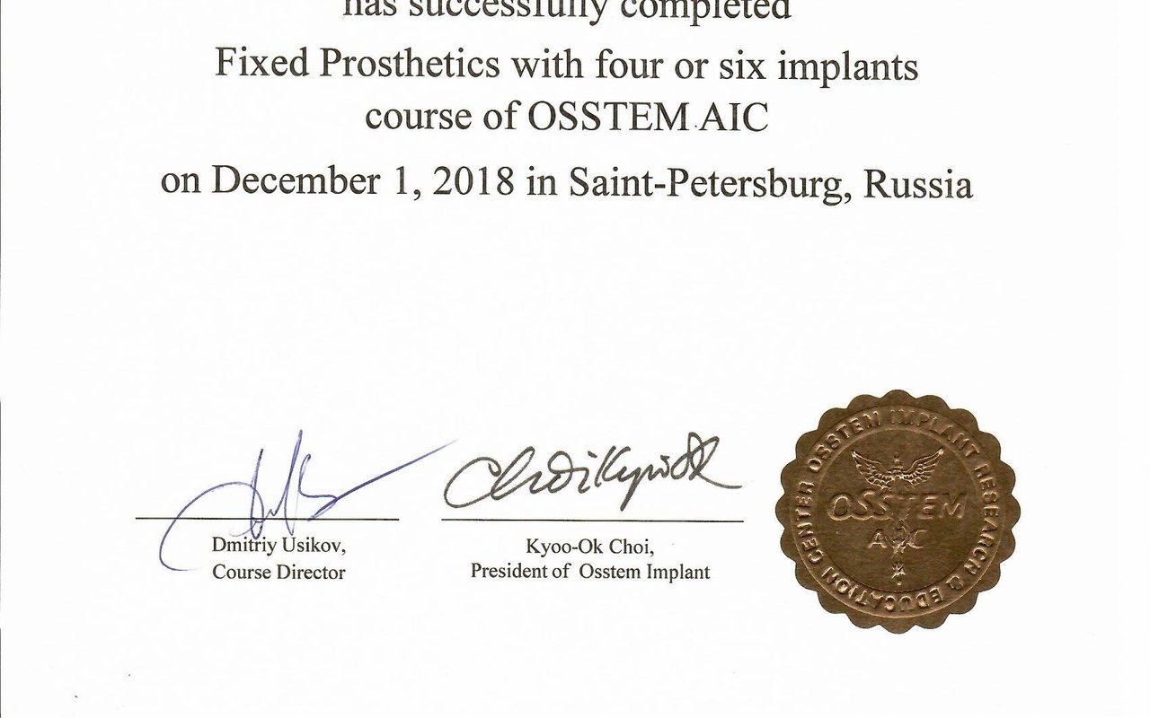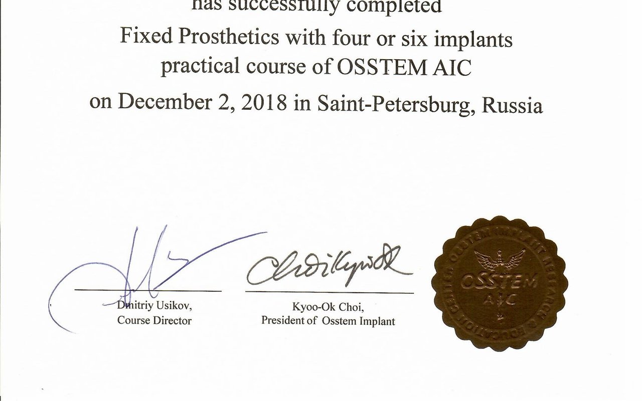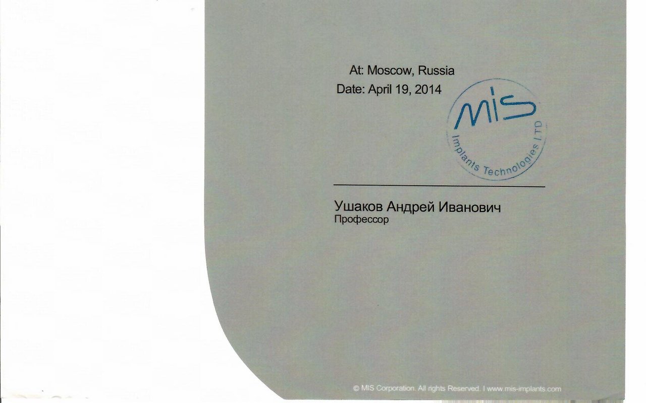 2014 — «Алгоритмы имплантологического лечения пациентов с системными заболеваниями и высокая степень риска осложнений»
