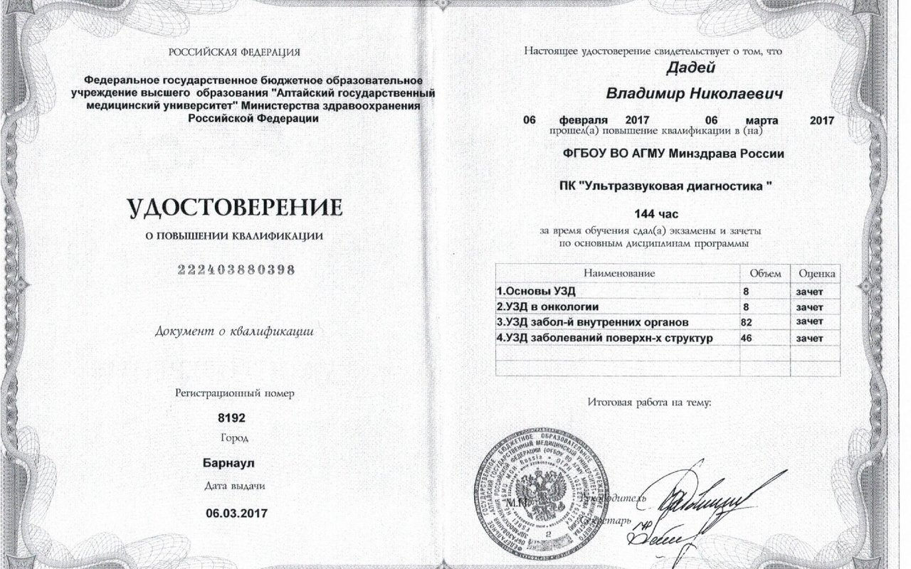 2017 — Алтайский государственный медицинский университет (ультразвуковая диагностика)