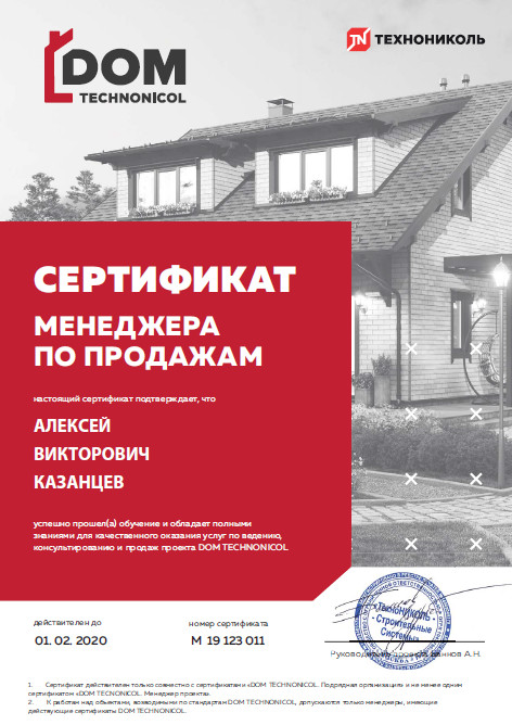 - Есть ли у Казанцева Алексея Викторовича необходимые сертификаты?