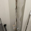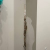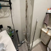 На фото видно, где стена сухая, где мокрая. Где темная штукатурка, там и была пробита трубка, на стене слева видно серое пятно на белой штукатурке — это вода. Внизу гипсокартонный короб, там нет протечек, но он весь мокрый. Если стена не высохнет (а она не высохнет) за мой счет все это долбить и заново штукатурить и красить.