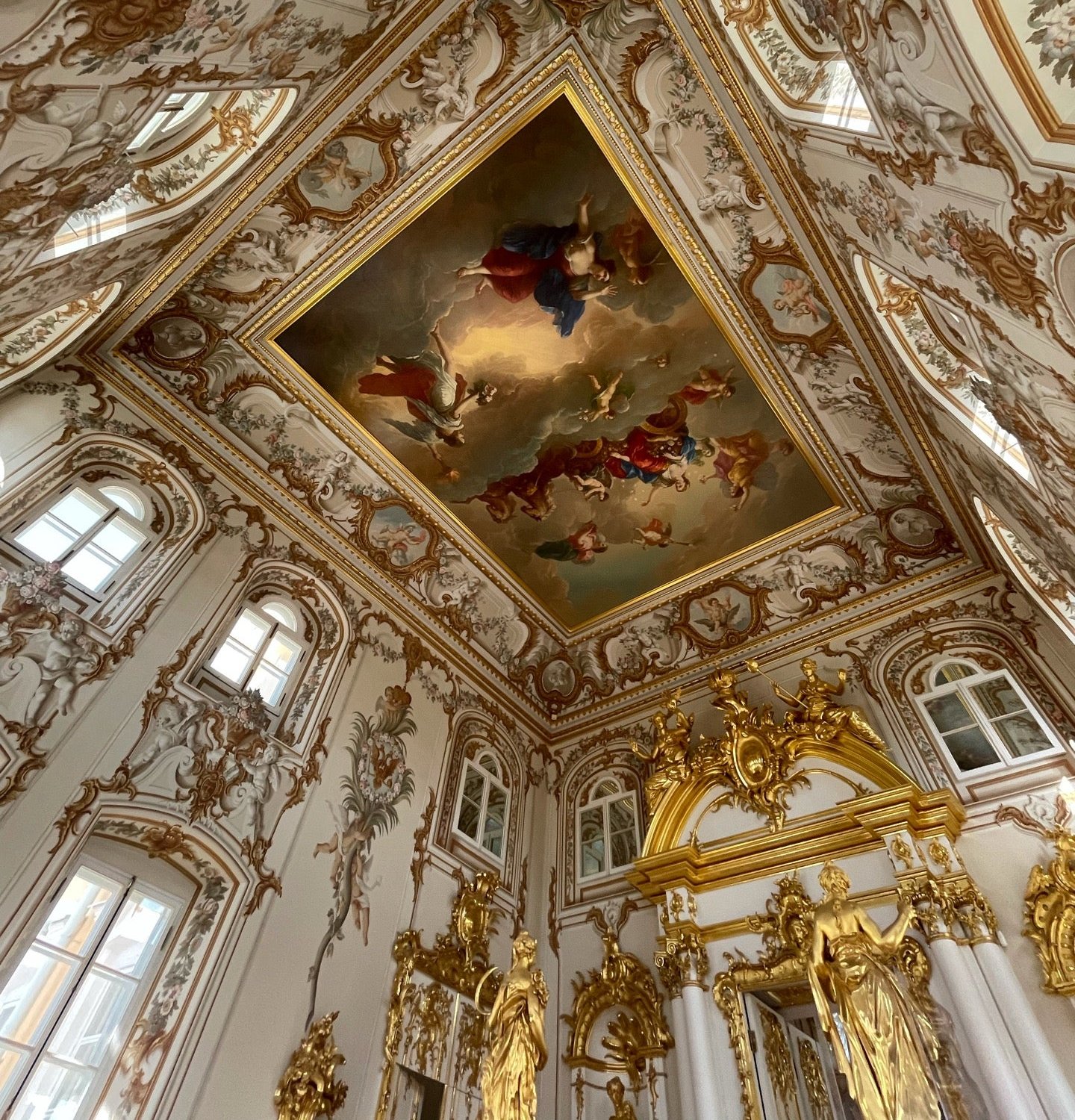 Мы с мужем не частые посетители Санкт-Петербурга, приезжаем к дочери. И вот она нас полгода назад повела в Петергоф. Да, мы были впечатлены внешним и внутренним видом, все очень красиво. Залы шикарные! Экскурсовод у нас был хороший, очень четкая речь, интересно рассказывает, но ее временами не было слышно. Мы обычно выбирали находиться рядом, чтобы слышать все, потому что наушники барахлили и выпадали. Но если оствал от общей группы, то тут же подходили администраторы и с надменным лицом указывали поторапливаться. Т.е. своим ходом здесь нельзя, рассмотреть не получится, только двигаться с потоком. Это напрягает.