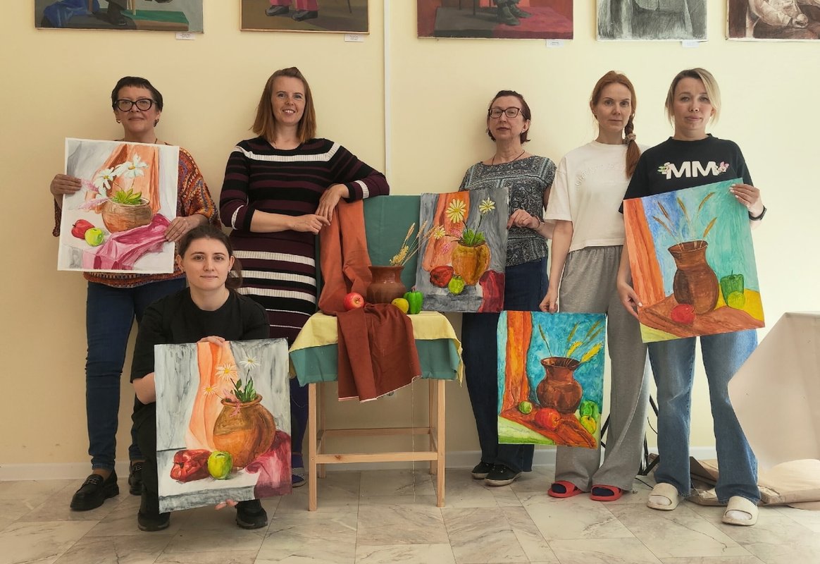 Образовательная программа для взрослых включает живопись, рисунок, декоративную и станковую композицию. Занятия 1 раз в неделю, продолжительностью 2 часа.
