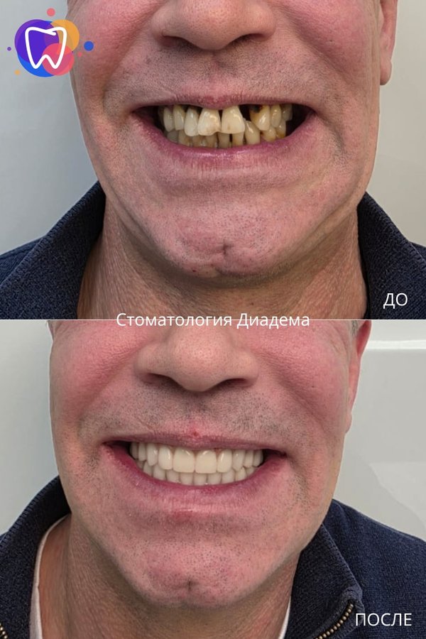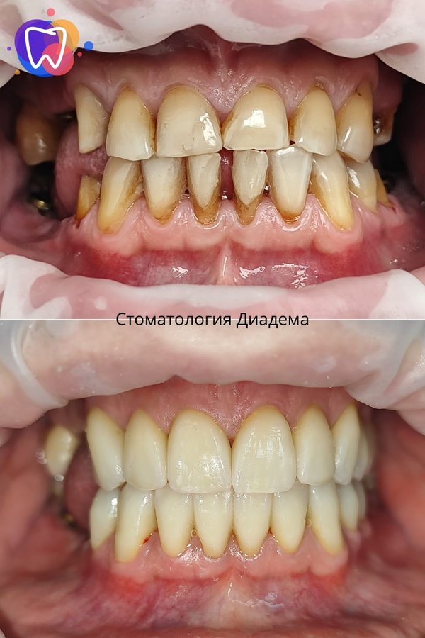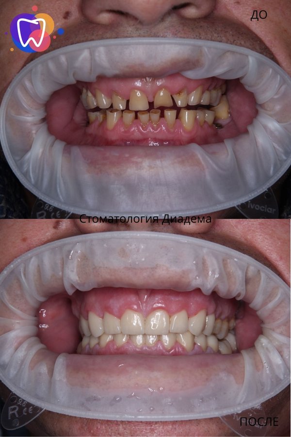 Пациент обратился с запущенным случаем стираемости зубов Что сделано: Восстановлен зубной ряд верхней и нижней челюсти с помощью коронок из диоксида циркония. Оставлена естественная анатомия и положения зубов. Фотографии сделаны сразу после установки коронок, есть небольшое воспаление десны в области 11 и 21 зуба, которое спадет в течении недели. Стираемость зубов — это патологическое (или физиологическое) убывание твёрдых тканей зубов (эмали и дентина), которое может привести к повышенной чувствительности, изменению прикуса, болевым ощущениям… — Читать дальше