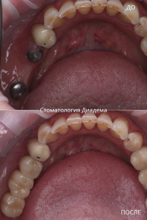 Что сделано: Установлен зубной имплантата и коронка на него. На 1 фотографии видно формирователь десны: Формирователь десны — это небольшой временный компонент, который устанавливается на имплантат зуба после его вживления в кость и перед установкой постоянной коронки. Он выполняет несколько важных функций: Зачем нужен формирователь десны: Формирование правильного контура десны: Самая важная функция – формирование естественного и здорового контура десны вокруг имплантата. Он создает пространство и поддерживает десну, чтобы она зажила правильной… — Читать дальше
