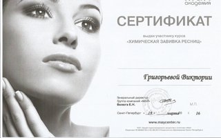 2015–2016 — ЧОУ « МАЙ» Курс профессиональной подготовки косметологов