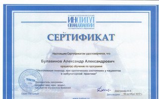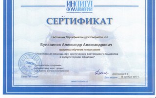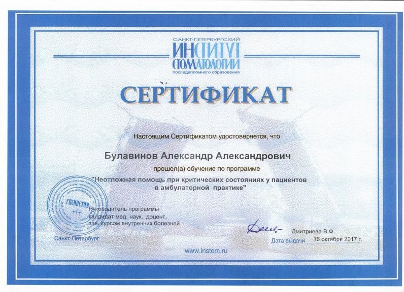 2017 г. «Неотложная помощь при критических состояниях пациентов в амбулаторной практике», Институт стоматологии, Санкт-Петербург