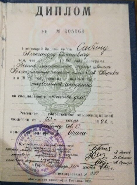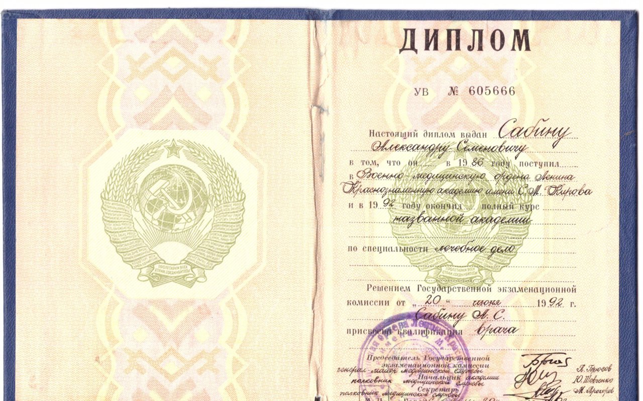 1992 — Военно-медицинская академия имени С. М. Кирова (лечебное дело)