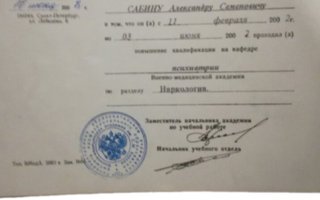 2002 — Военно-медицинская академия имени С. М. Кирова (наркология)