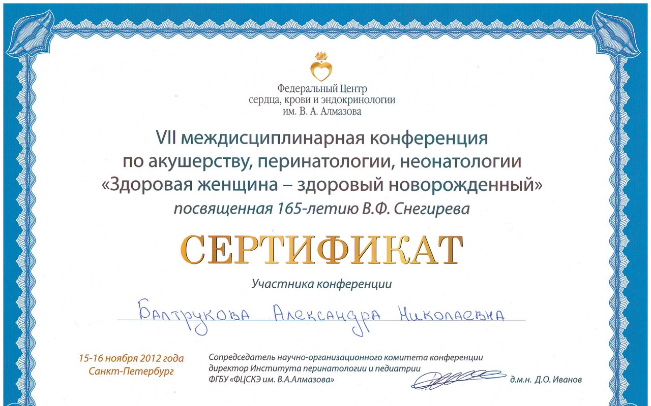2016 — Северо-Западный государственный медицинский университет им. И.И. Мечникова (акушерство и гинекология)