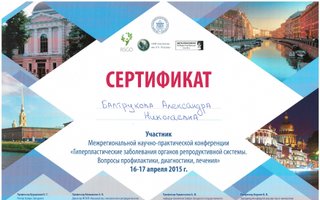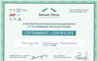 2016 — СЗГМУ им. И.И.Мечникова по специальности «Ультразвуковая диагностика» и «Онкология»